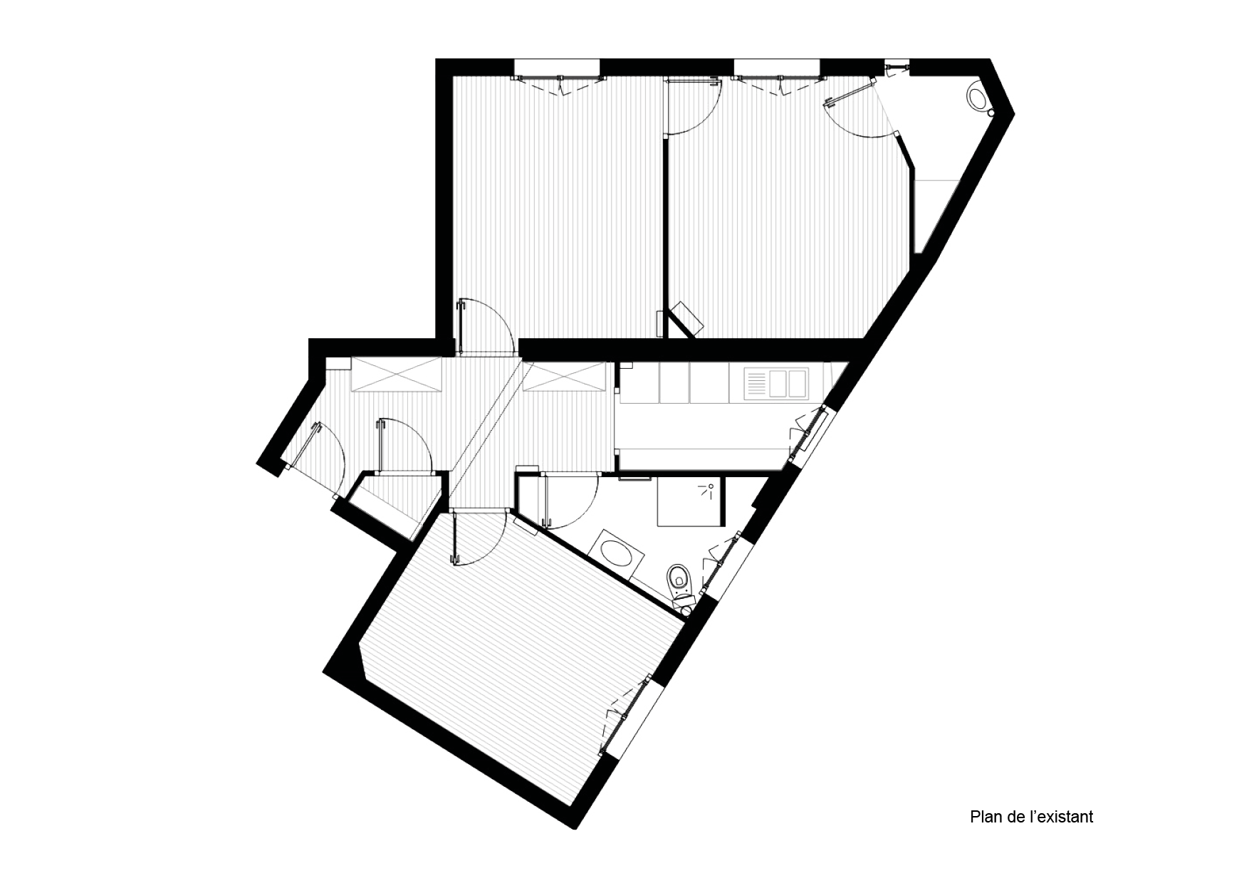 Nature des travaux · Rénovation complète, réagencement du plan d’aménagement, ouvertures de porteurs avec reprises structurelles, dessin de mobilier sur-mesure