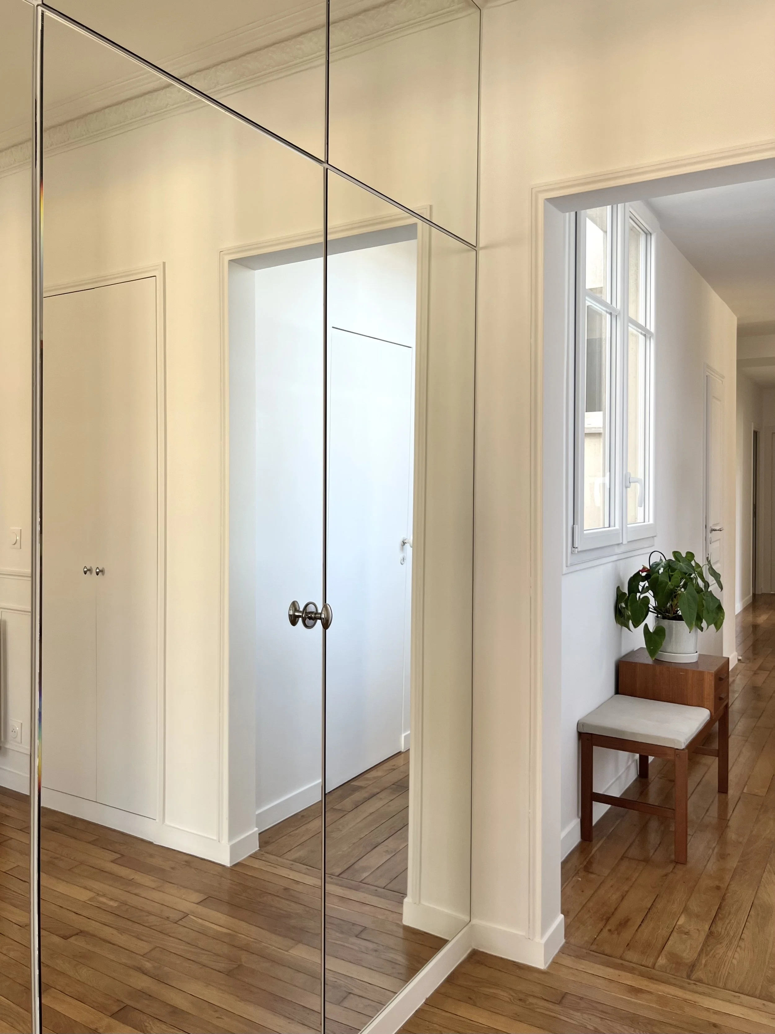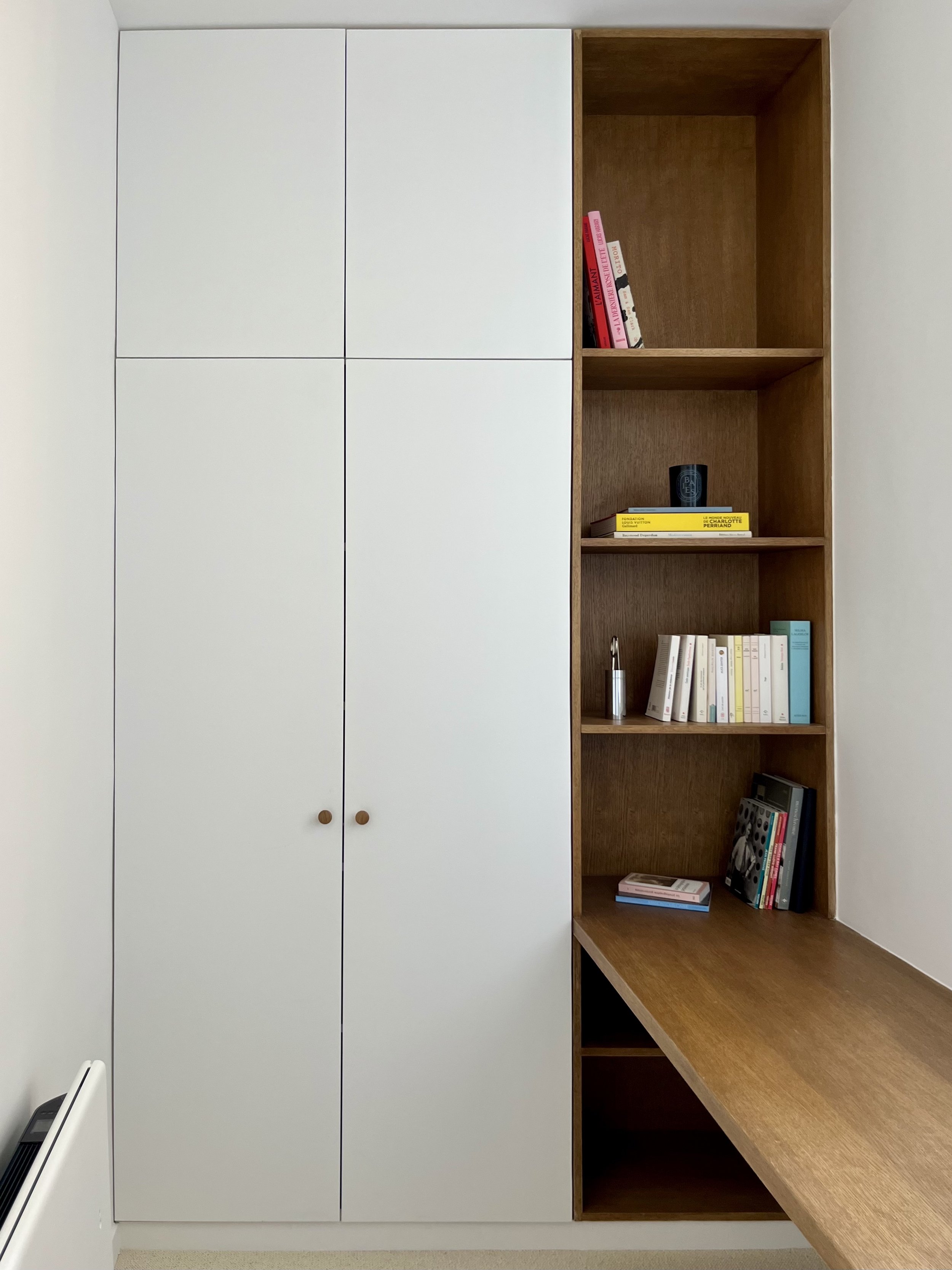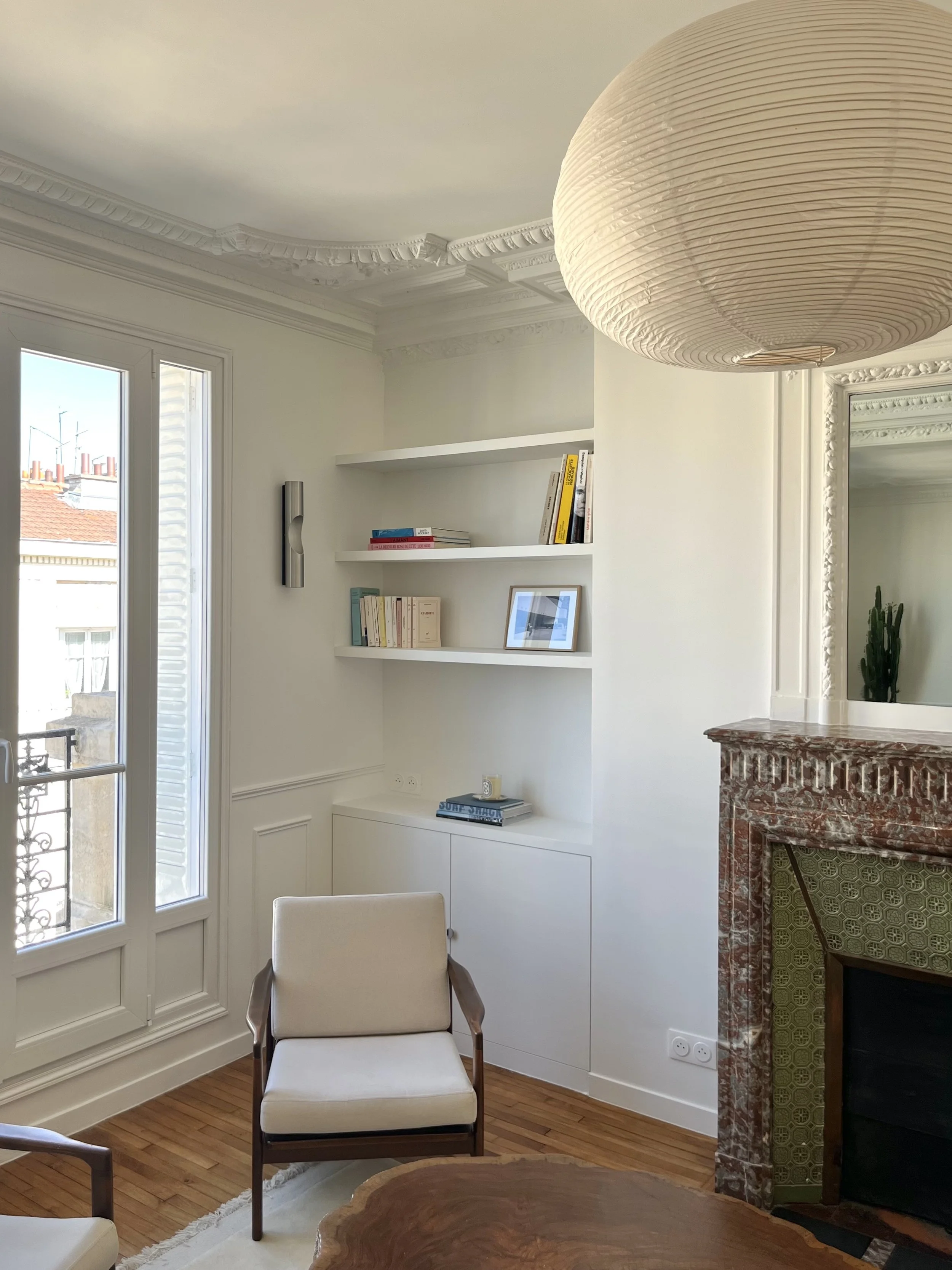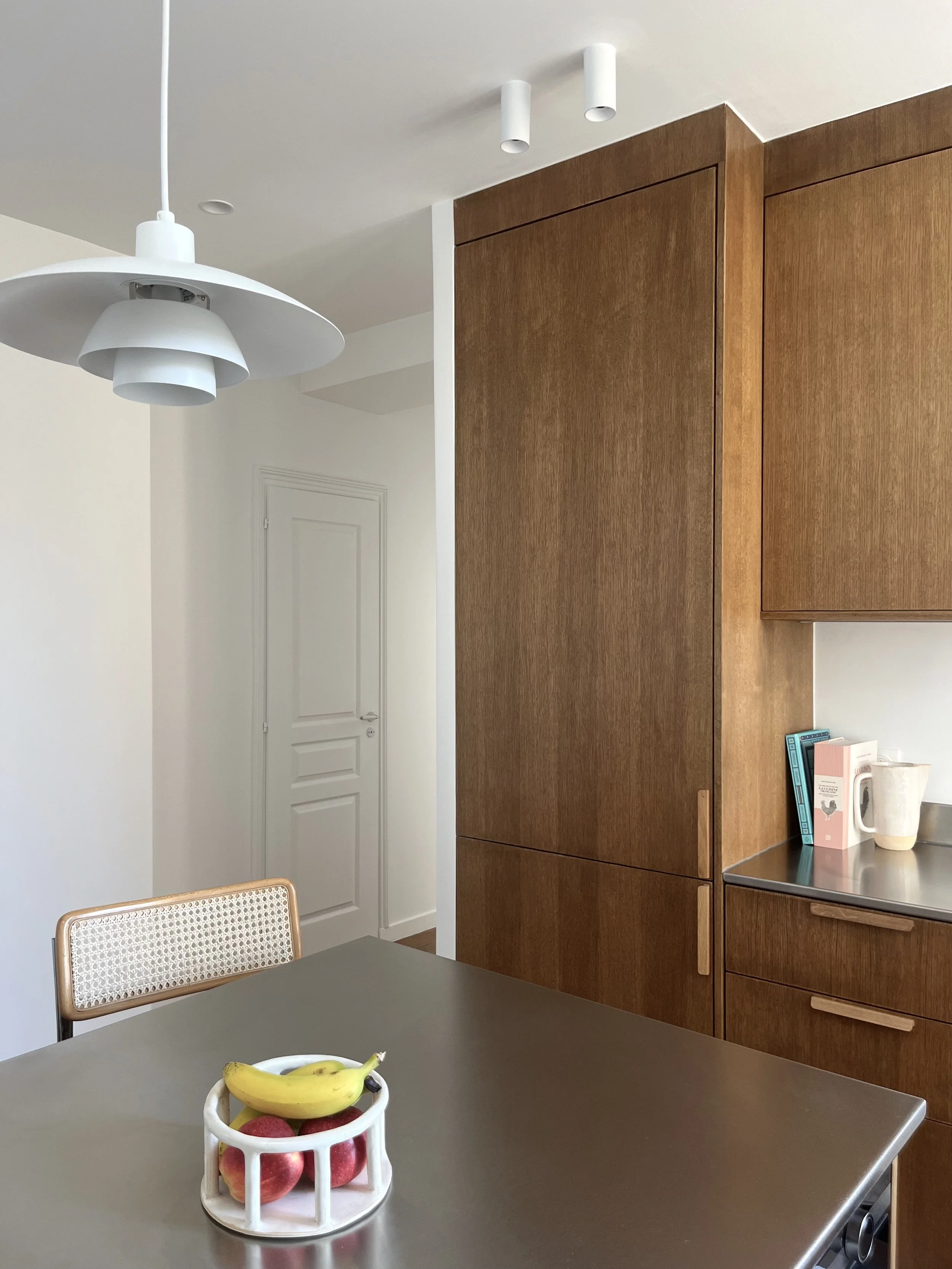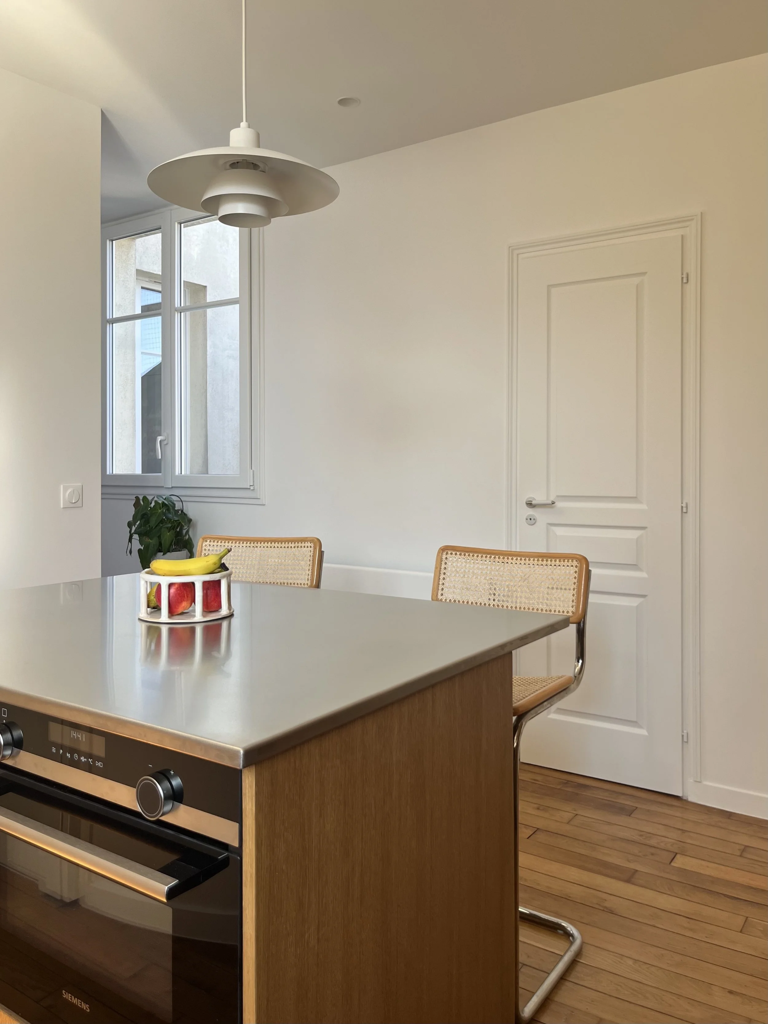 Nature des travaux · Rénovation complète, réagencement du plan d’aménagement, ouvertures de porteurs avec reprises structurelles, rénovation énergétique, dessin de mobilier sur-mesure